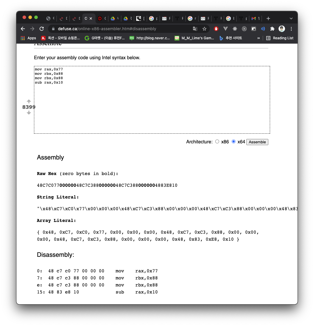 1. rax์ 0x77 ๊ฐ์ ๋์ ํด๋ผ.