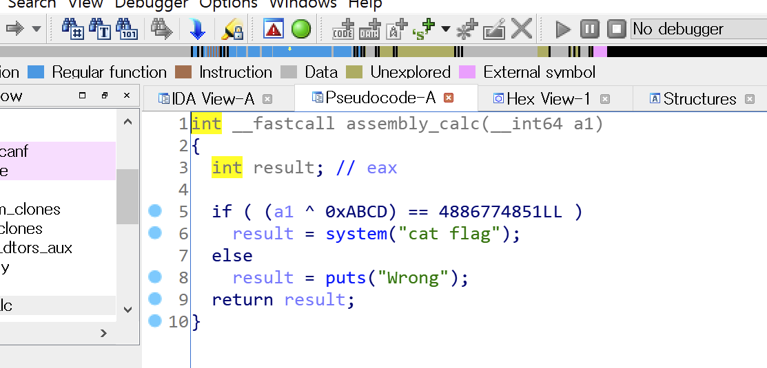 ๊ณ์ฐ ๊ฒฐ๊ณผ๋ฅผ ํ๋ก๊ทธ๋จ์ ์ ๋ ฅํ์ฌ flag๋ฅผ ํ์ธํ๋ค.